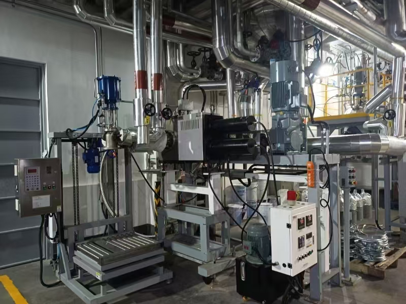 从计量泵稳定出料+高效高精过滤器+夹套气动阀+PLC触摸屏控制系统(压力传感器超压报警)+高精度电子称RS485通讯系统(称重到了自动关闭出料阀),完美对出料系统的控制和出料精确计量。为热熔胶生产增效增产,提高PUR产品稳定性。